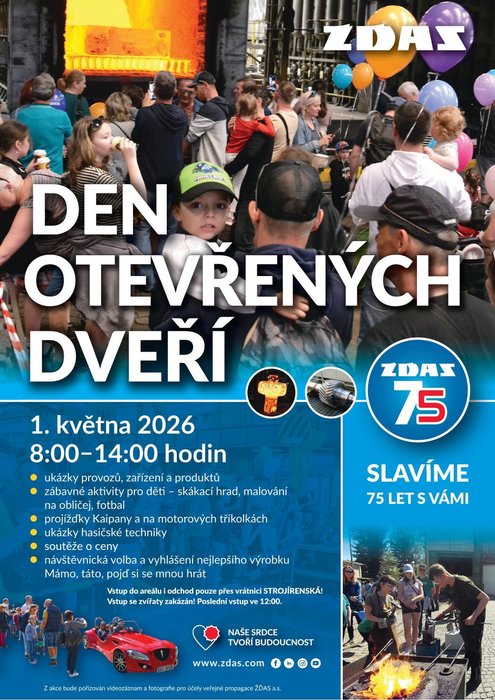 ŽĎAS Vás srdečně zve na den otevřených dveří 1.5.2026 od 8:00 do 14:00 hodin. Je připraven bohatý program a soutěže jak pro dospělé tak pro děti.