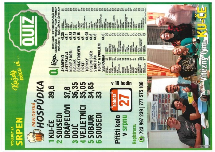 Pavlovská hospůdka Vás srdečně zve na QUIZ, který se bude konat 27.9.2025 v 19:00 hodin